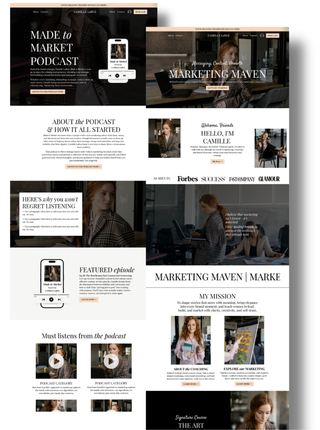 A complete Kajabi template collection built for brand strategists, marketing coaches, and creative entrepreneurs who want a site that communicates elegance, authority, and intention — from the very first scroll.