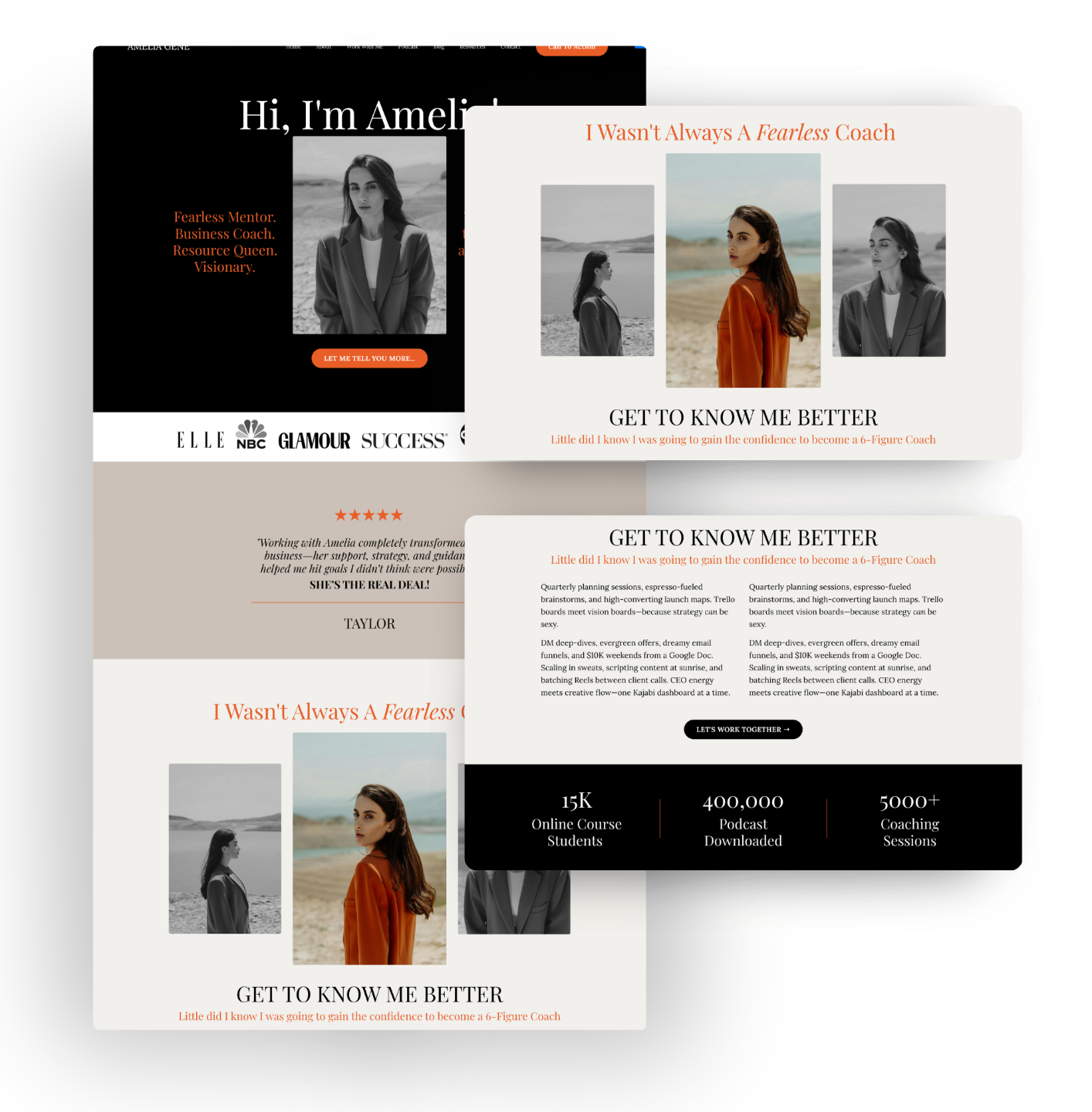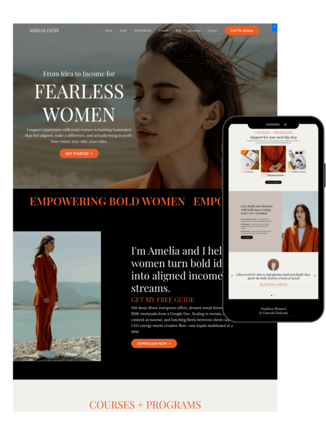 Don't take our word for it — click through every page of the Amelia template and see exactly what your new Kajabi site could look like. Website pages, sales page, lead magnet funnels, and webinar pages all available to preview.