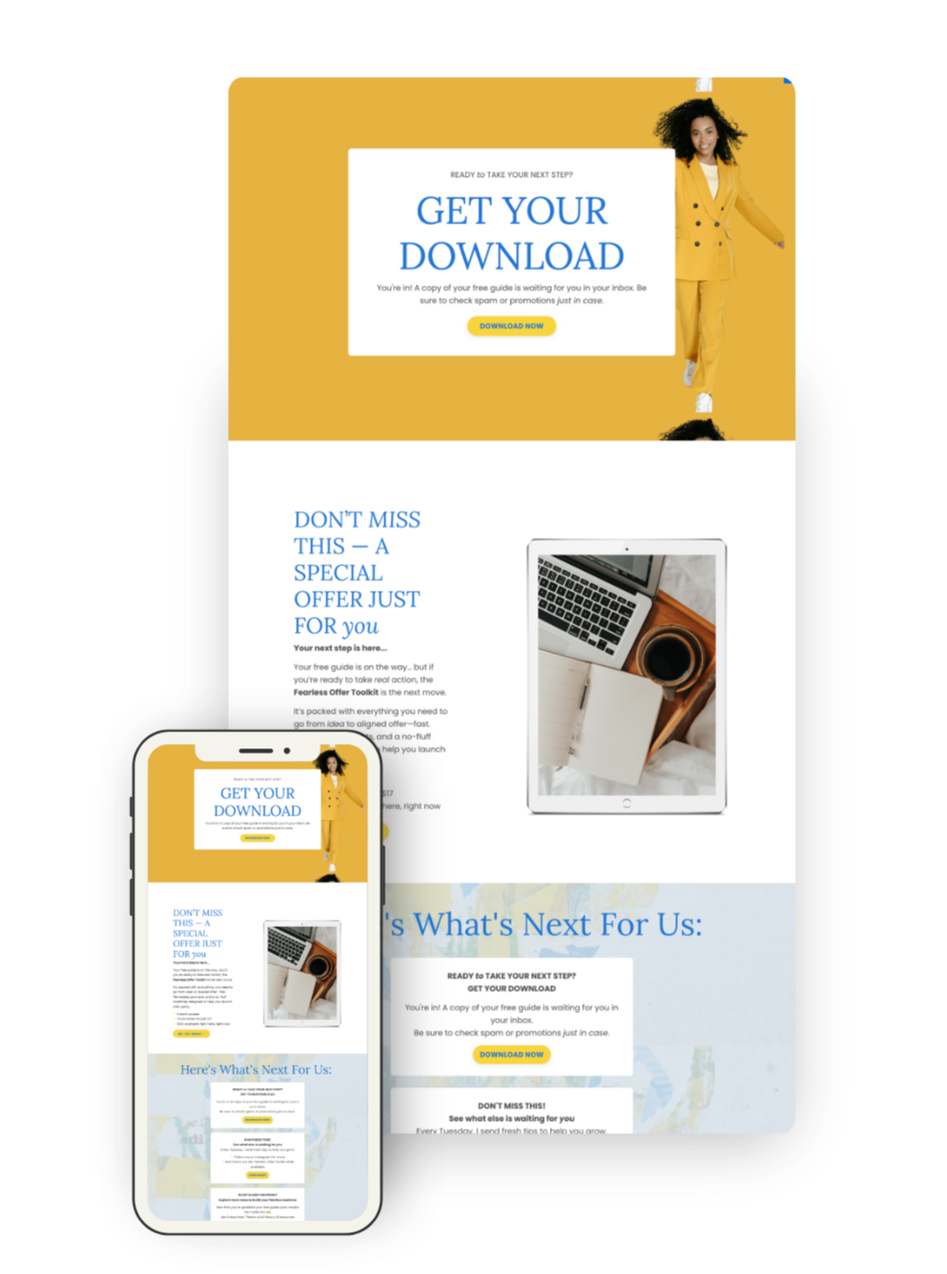 Swap in your colors, fonts, and images using the included Canva brand files. No designer or developer needed — just your vision and a few clicks.