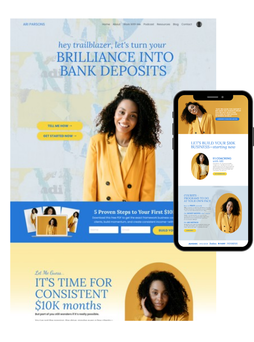 Every page of Ari is built to convert — from the freebie above the hero to the income-focused copy throughout. Your site works as hard as you do.