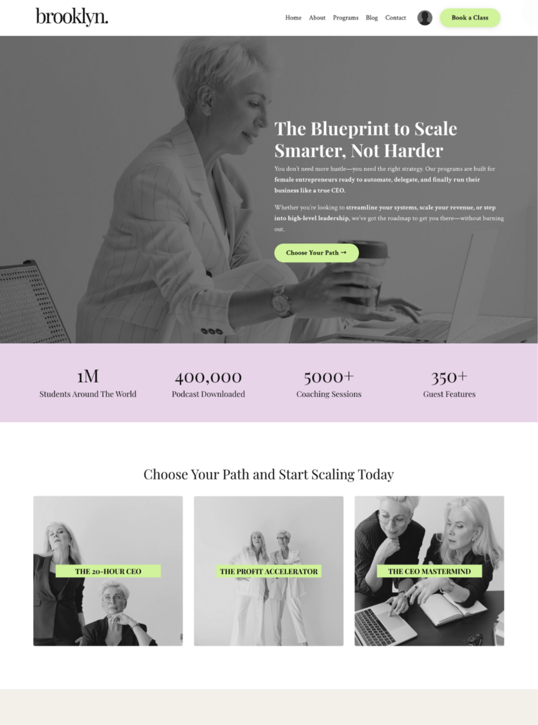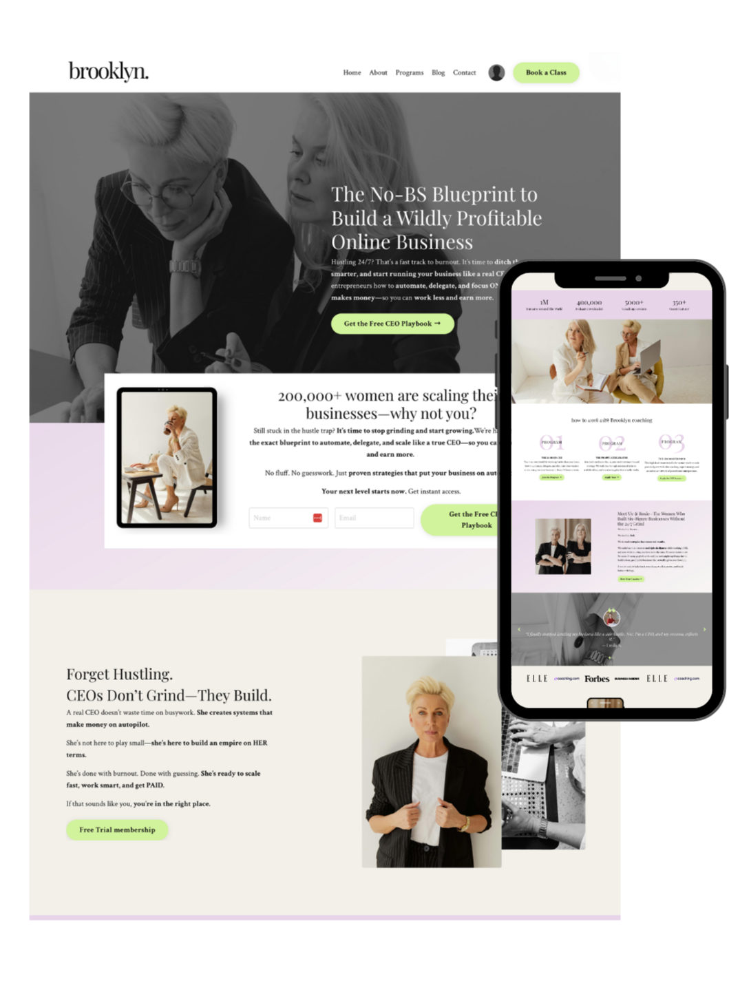 A complete Kajabi template collection built for female entrepreneurs who are done hustling and ready to scale. Brooklyn is high-energy, conversion-focused, and designed to help you work less and earn more.