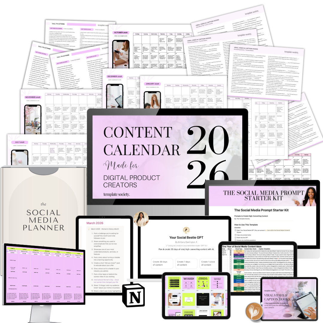 ✔ 2026 Social Media Content Calendar (PDF + Notion)