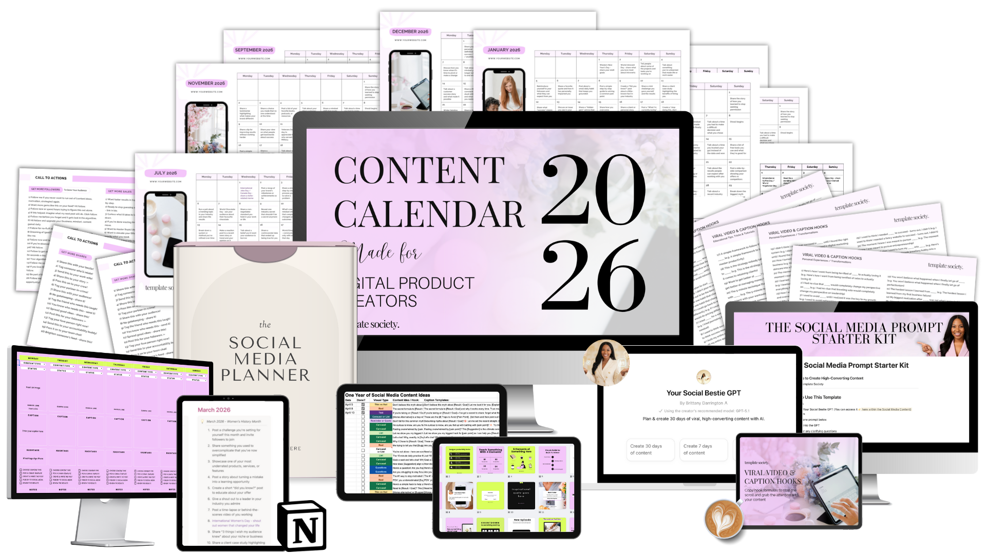 NEW: 2026 Social Media Content Calendar (PDF + Notion).......................Value: $97